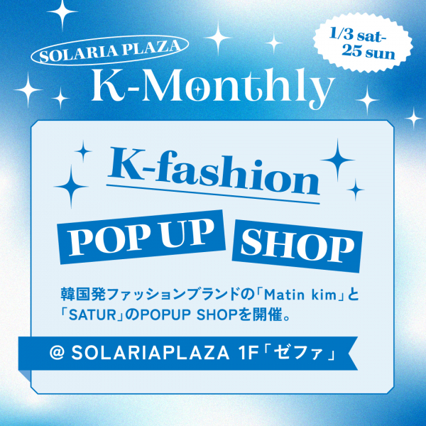 韓国発の人気ファッションブランド『Matin Kim (マーティンキム)』『SATUR(セター)』をはじめ、K-ファッション、雑貨のポップアップショップが登場!